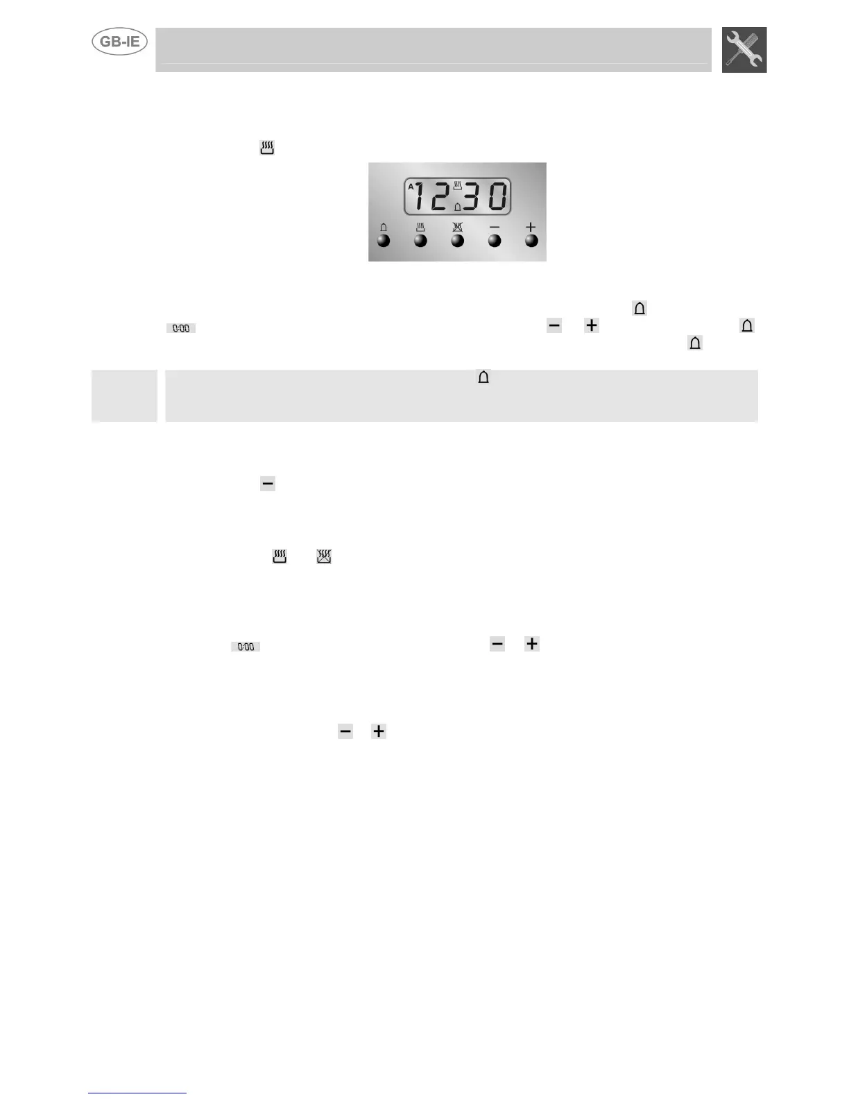 Use as a minute counter does not interrupt functioning of the oven at the end of the programmed time.