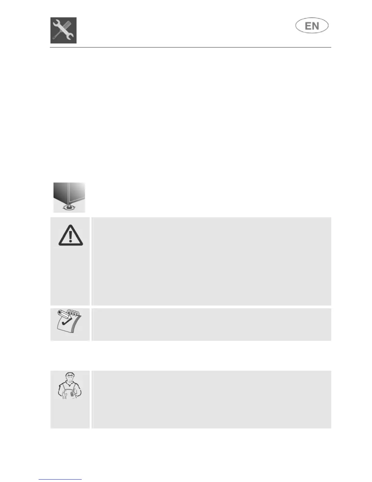 Level the appliance on the floor using its adjustable feet. This operation