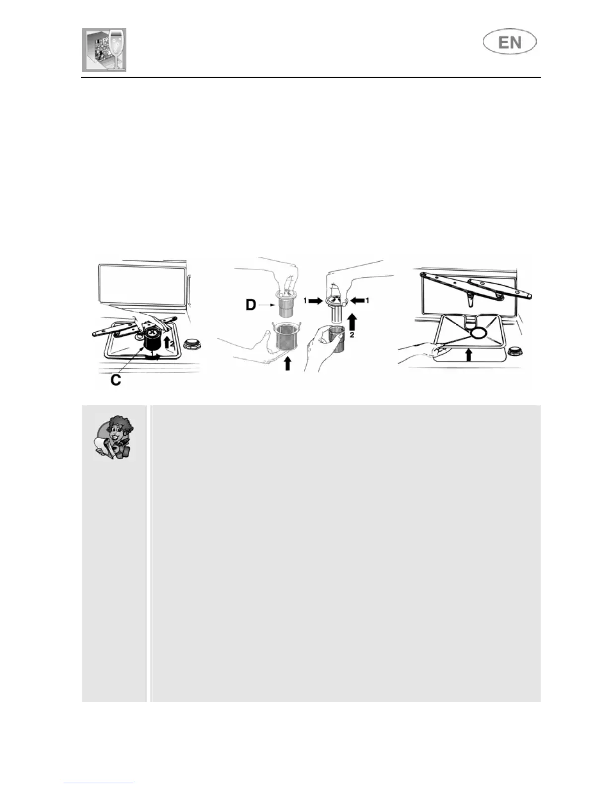 necessary, to clean it. To remove the filter, grip the tabs, turn them