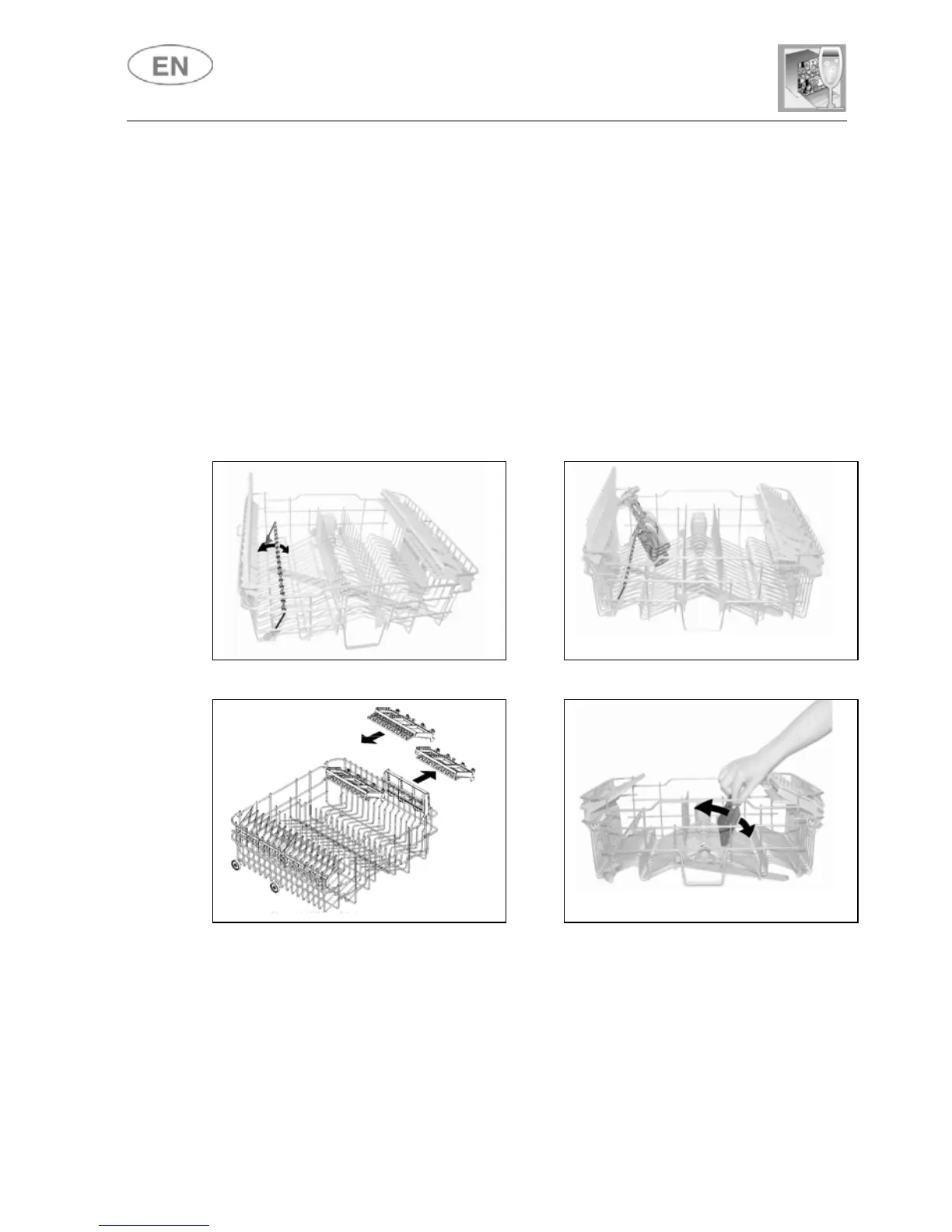 - Cutlery racks, on the right, designed for knives and teaspoons;