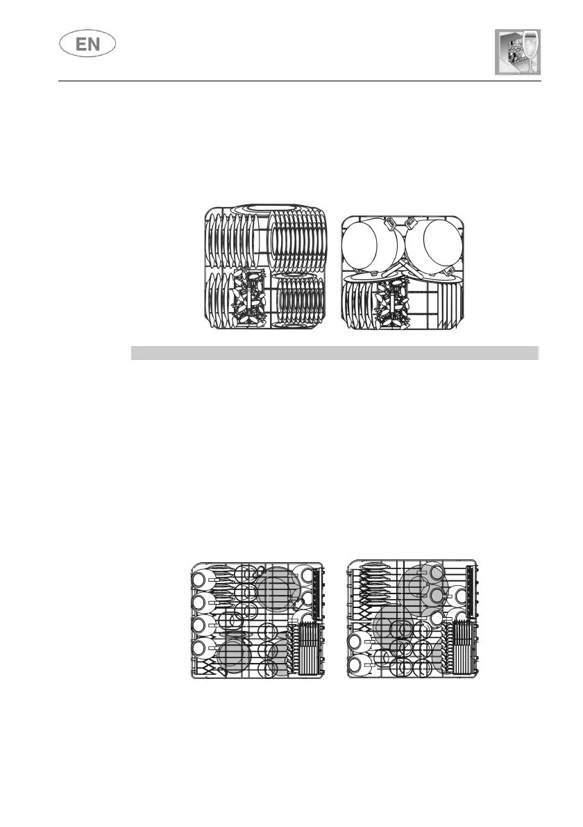 Load plates facing forward; cups, bowls etc. must always be facing
