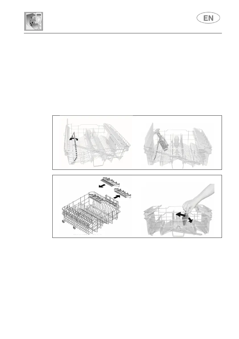 - Cutlery racks, on the right, designed for knives and teaspoons;