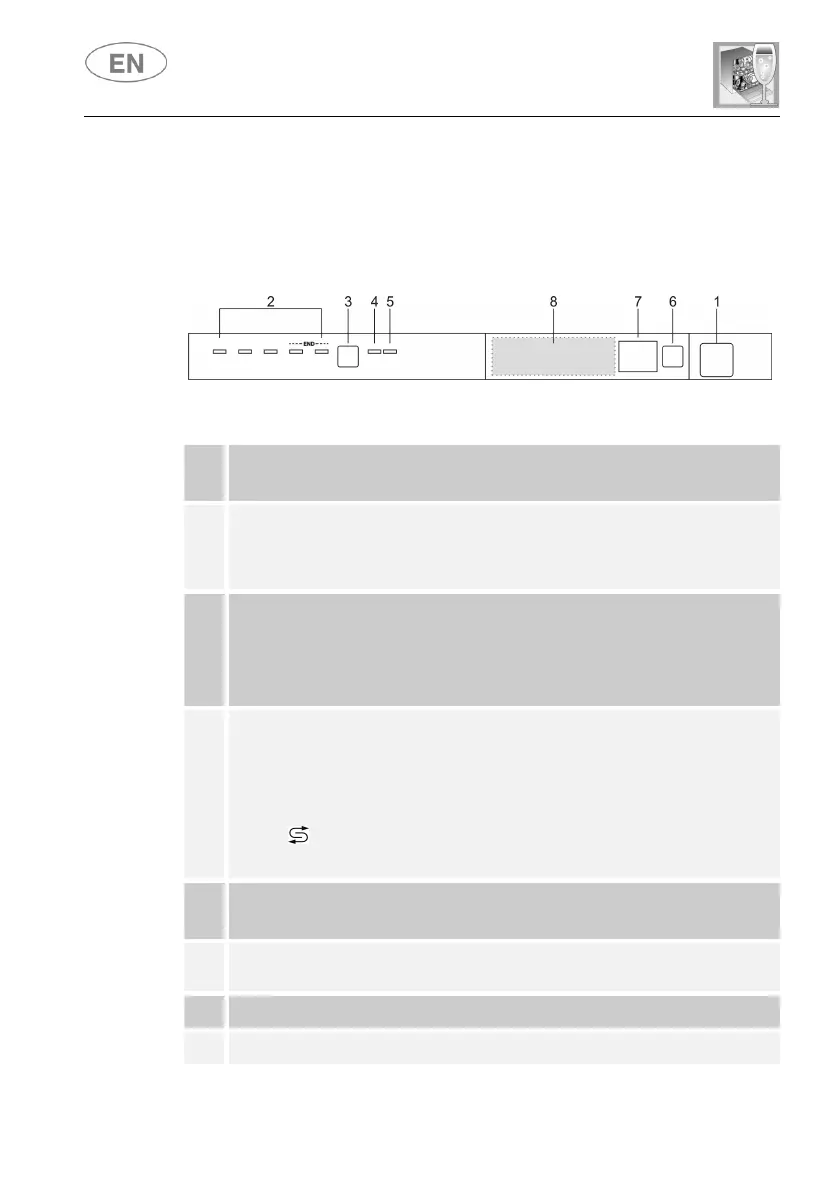 All the dishwasher controls are grouped on the upper panel. Switch-on,