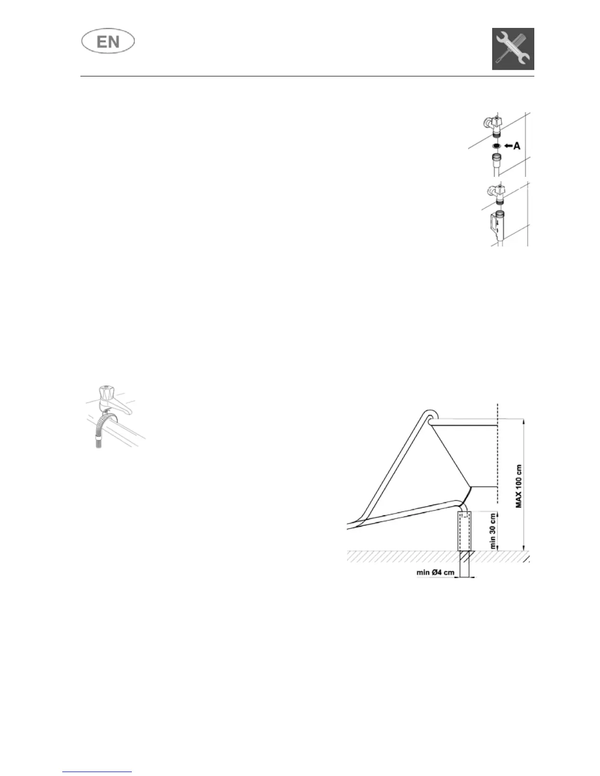 cm, and should never be submerged in water. If a horizontal drain