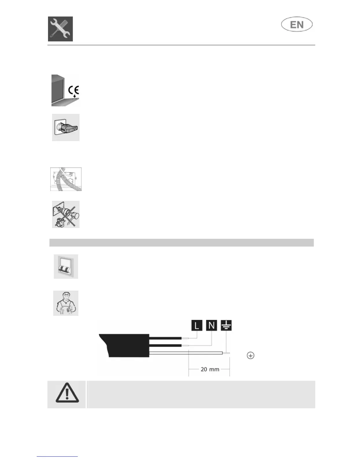 THE CONNECTION TO THE MAINS MUST BE CARRIED OUT BY A