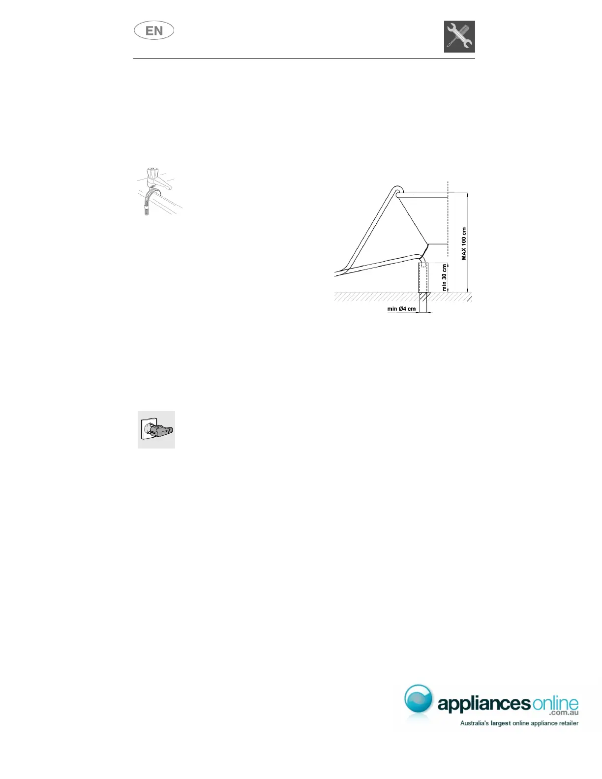 extension hose is used (for a maximum of 3 m) the drain hose can be