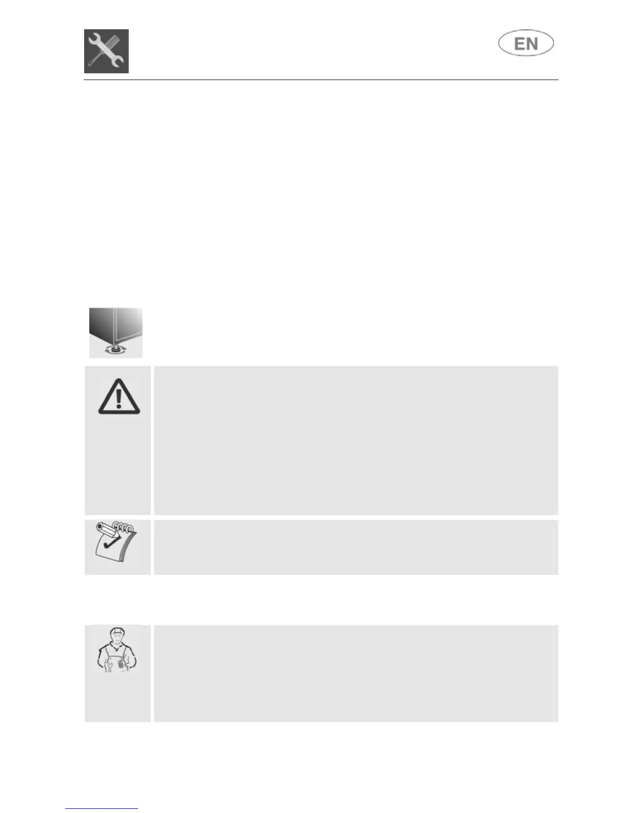 Level the appliance on the floor using its adjustable feet. This operation