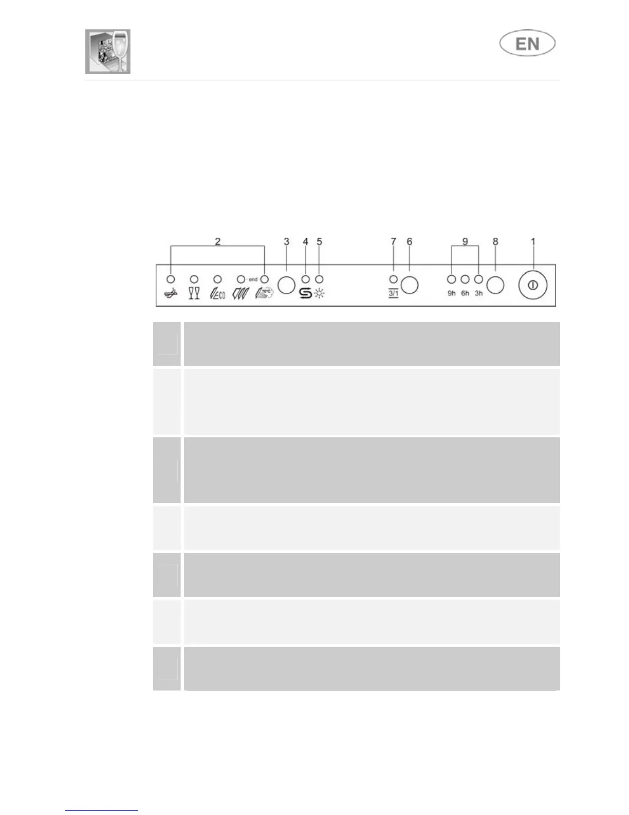 All the dishwasher controls are grouped on the upper panel. Switch-on,