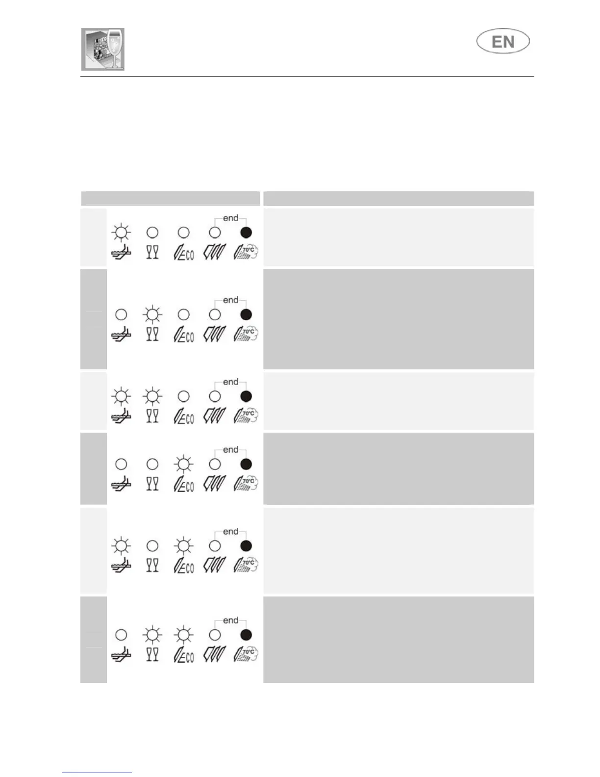 The dishwasher is capable of signalling a number of faults through the