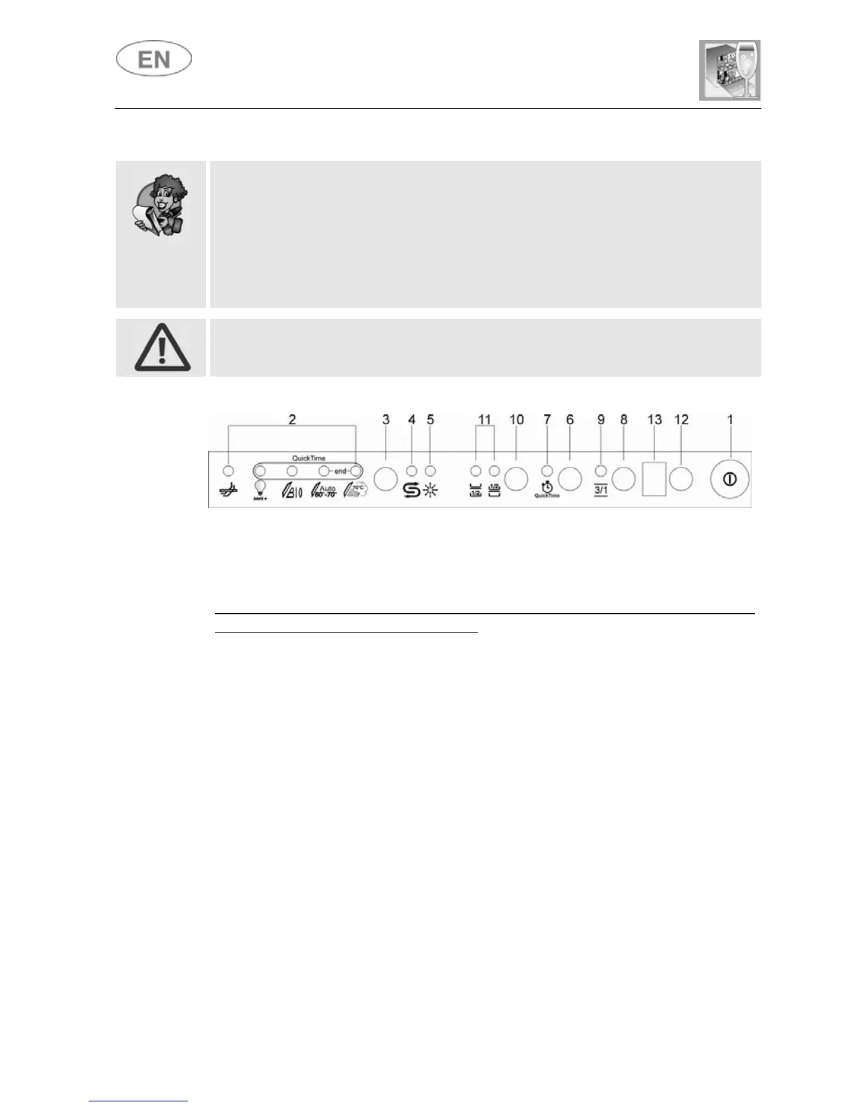 N.B.: the display shows the water hardness setting and the program
