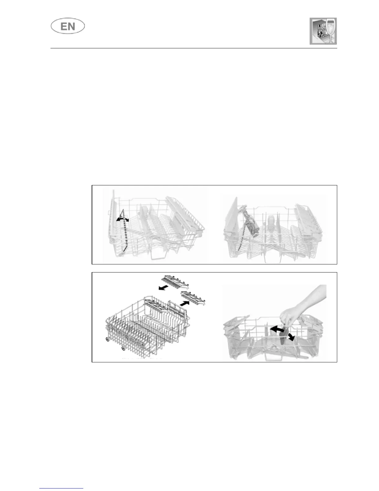 - Cutlery racks, on the right, designed for knives and teaspoons;