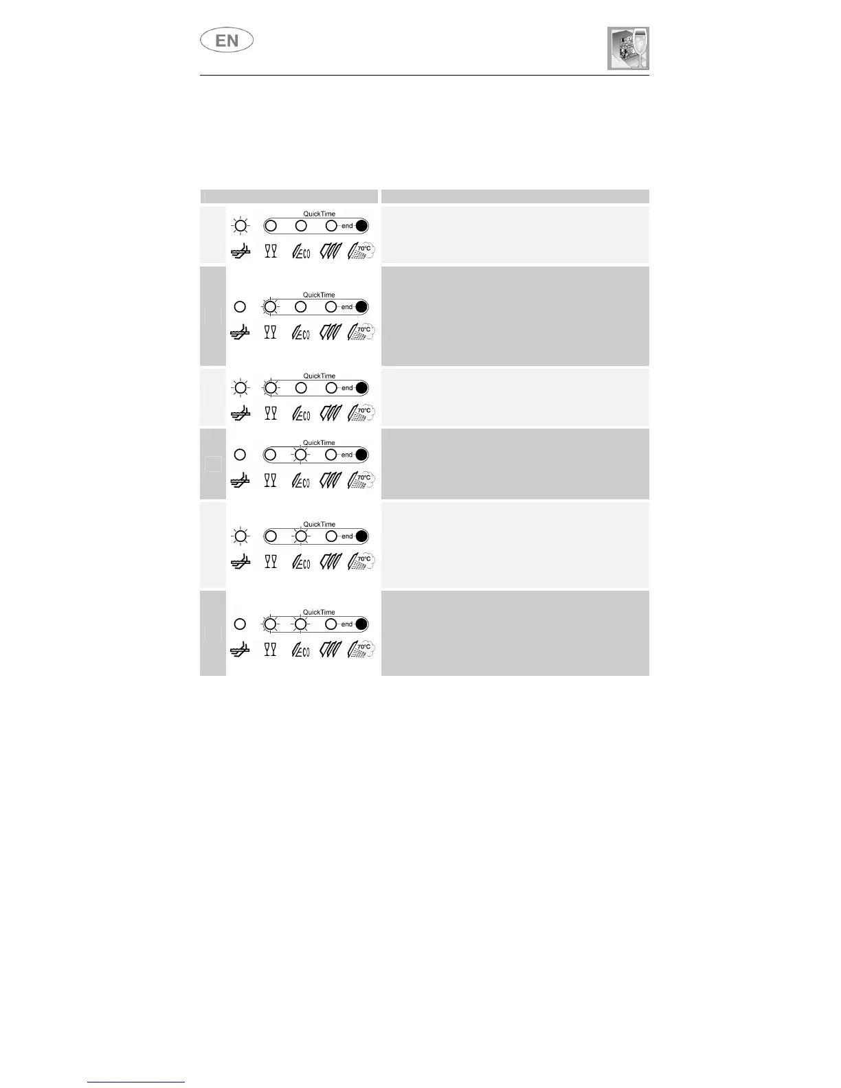 The dishwasher is capable of signalling a number of faults through the