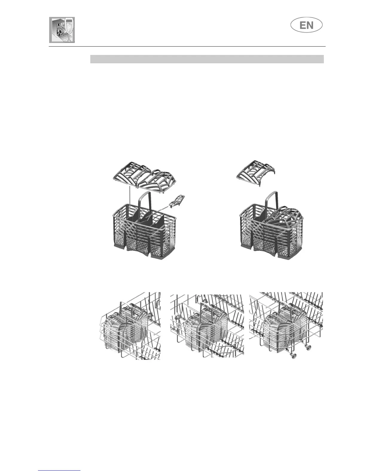 The basket has removable top grids into which items of cutlery should