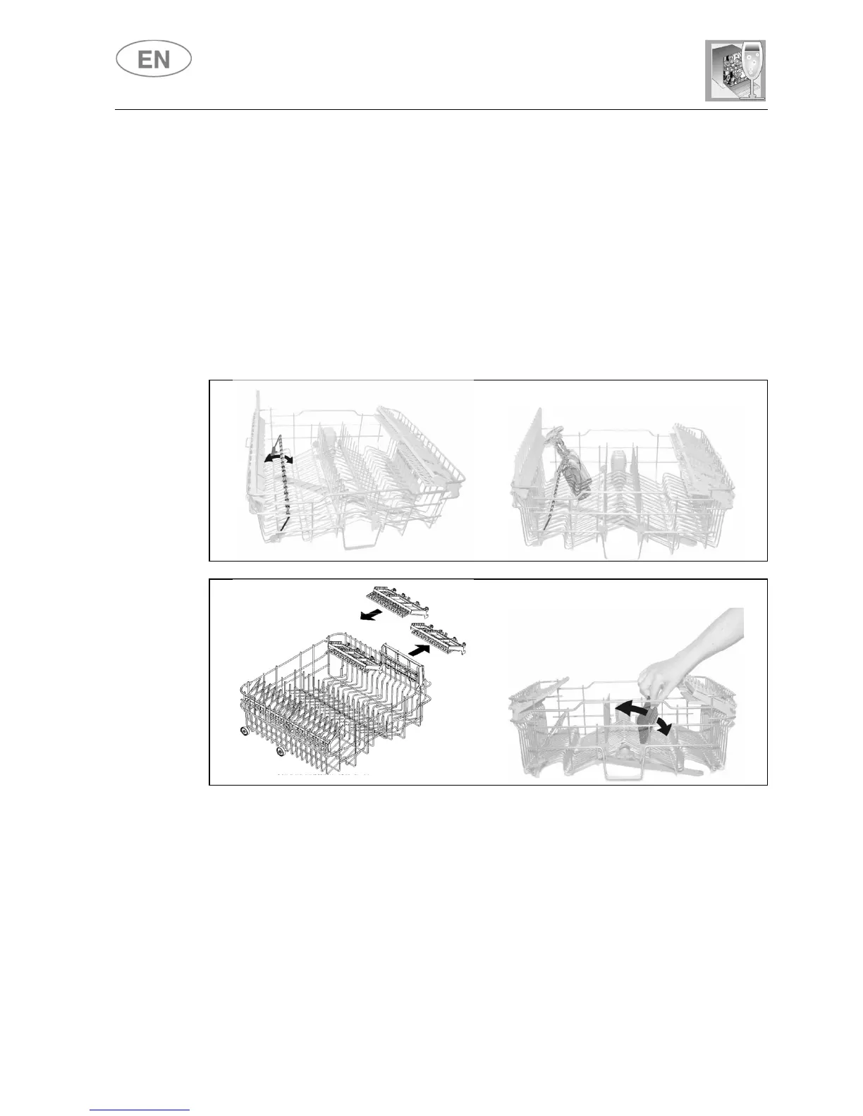 for teaspoons, pull out the sliding support. The racks can be