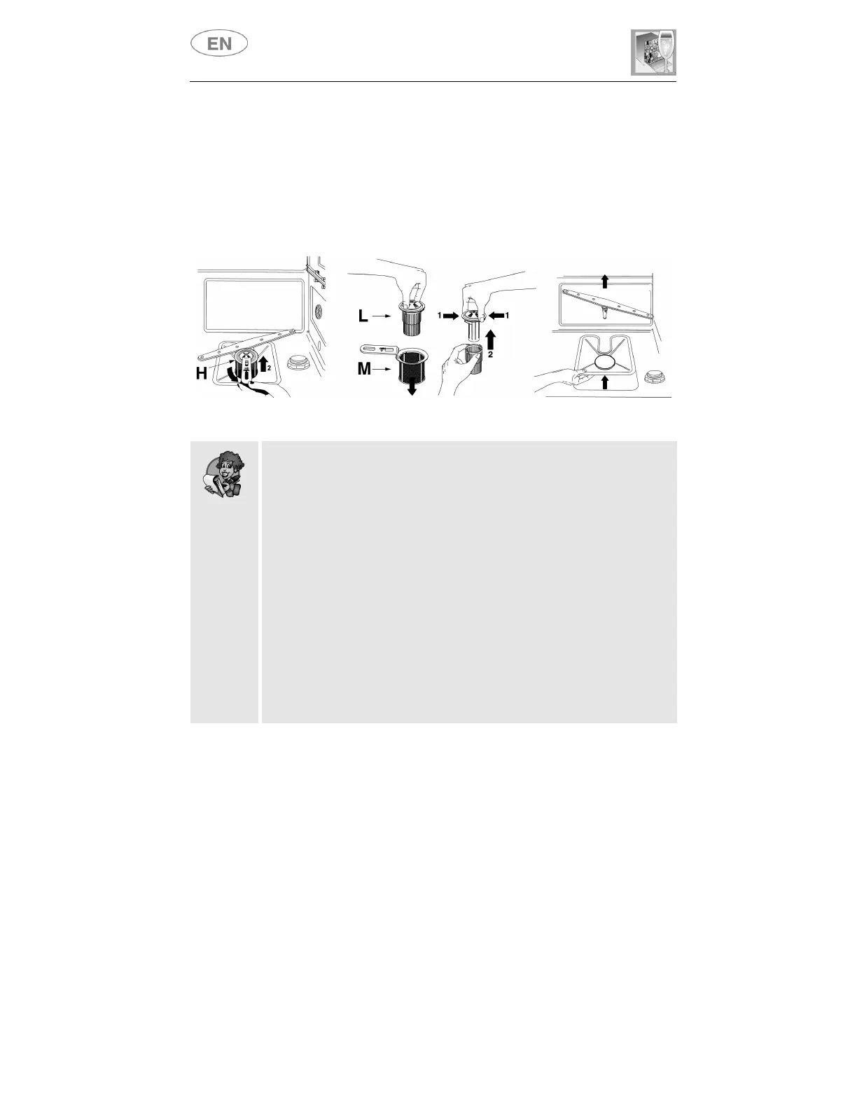 plastic filter by pressing gently in the points shown, lifting it upwards