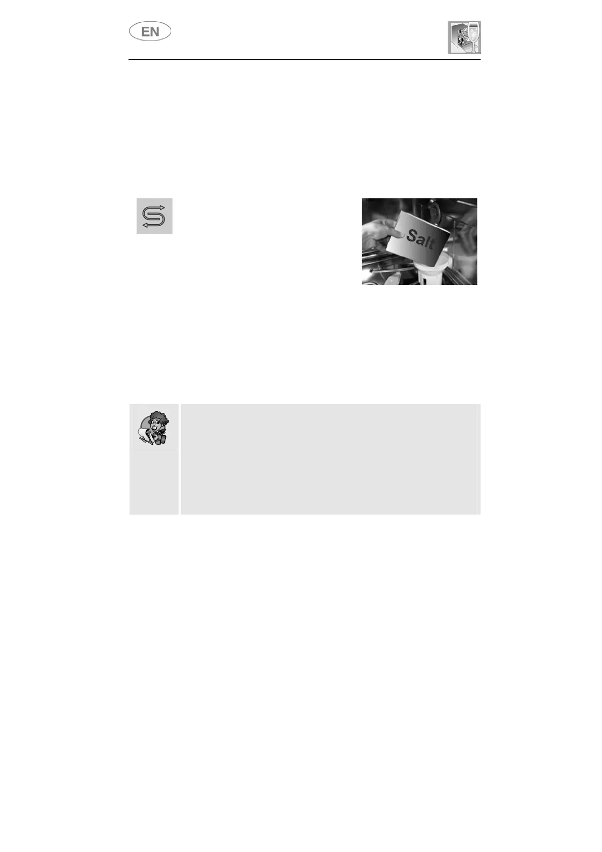 x When using the dishwasher for the first time, in addition to the salt it