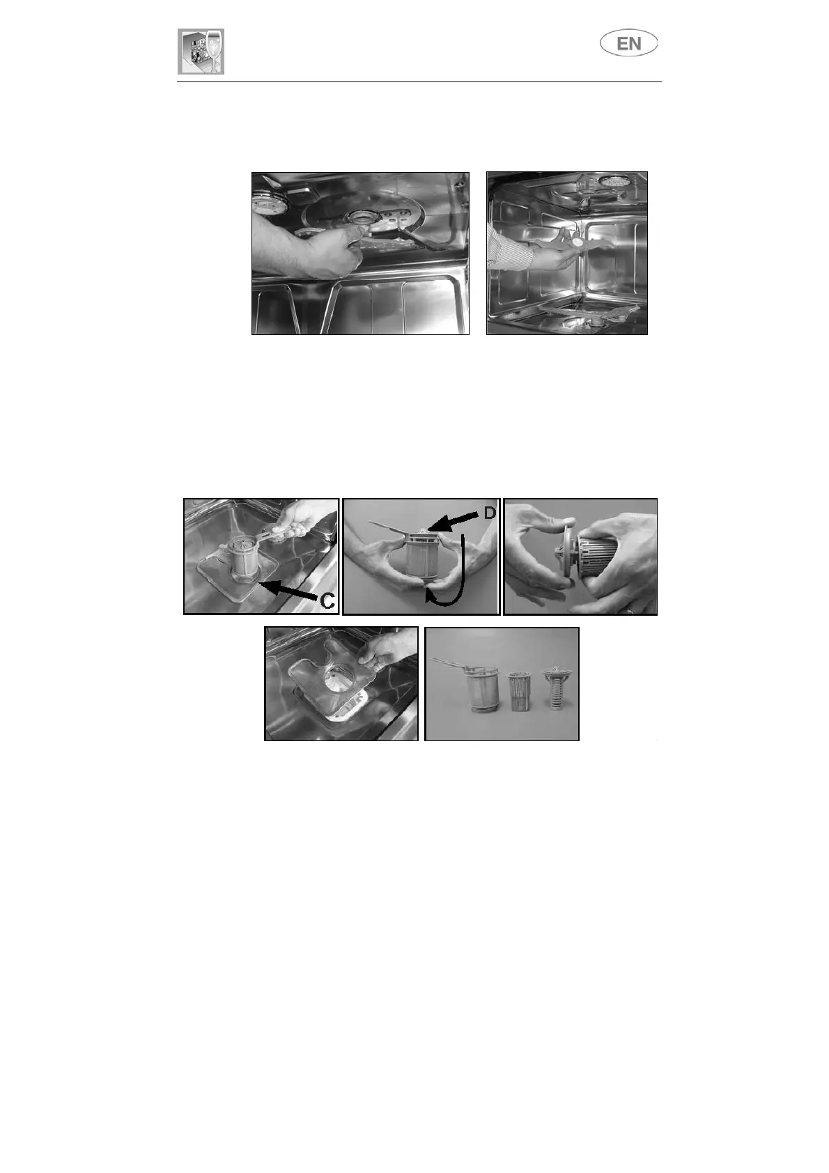 To remove the top spray arm, take off the retainer ring-nut. Wash it in a
