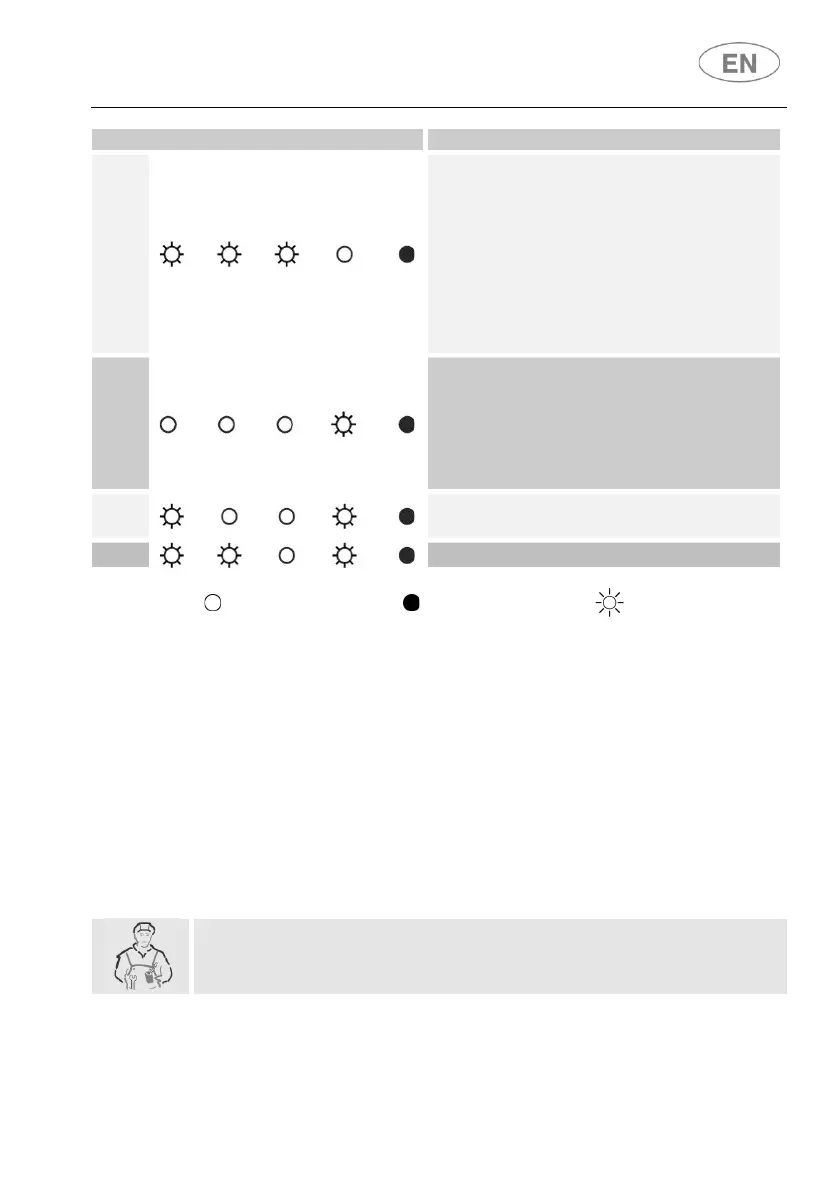 If an alarm occurs the appliance interrupts the program in progress and signals
