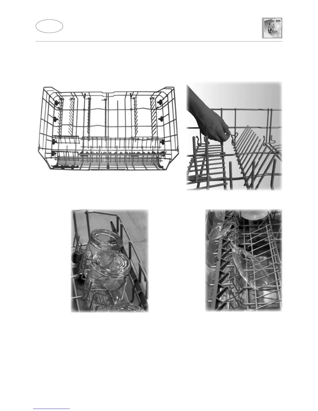The photos show the rack for normal glasses (item A) and for ute glasses