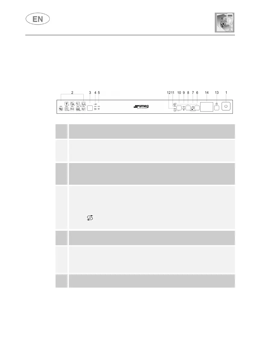 All the dishwasher controls are grouped on the upper panel. Switch-on,