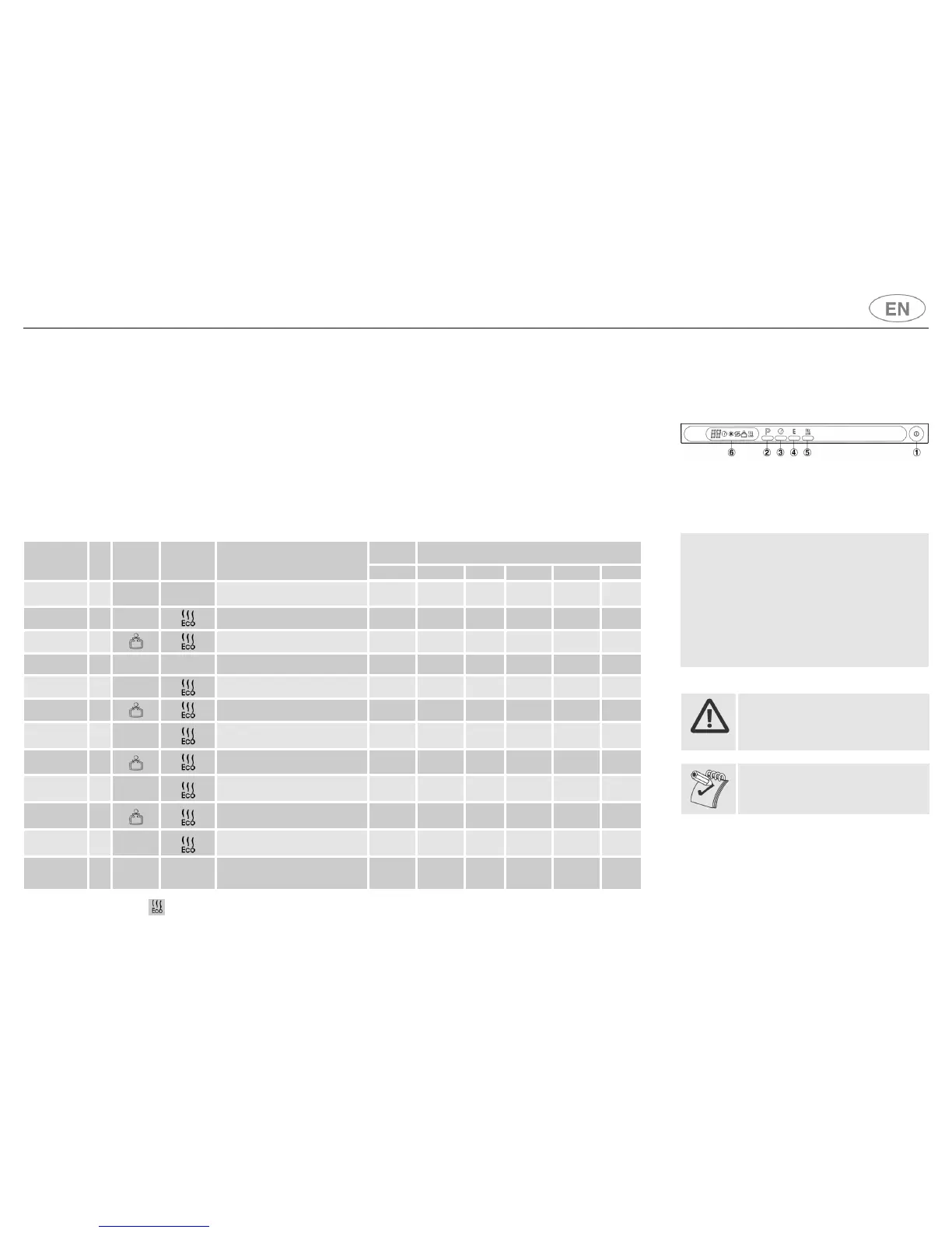 To select the most suitable pr ogram for the di shes to be washed refer to the table below, which indicates the most appropriate program