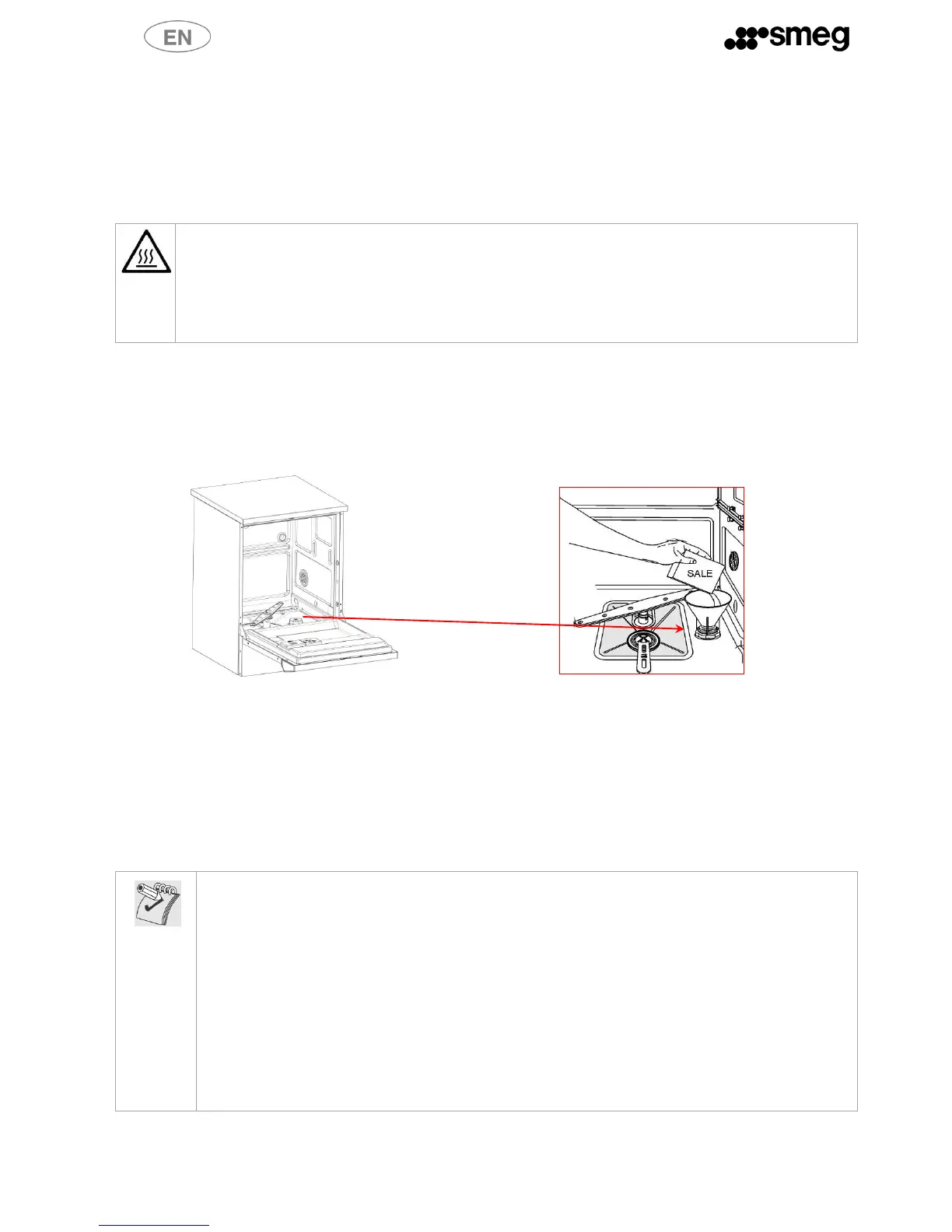 mixture of water and detergent must not get into the salt tank, as this would impair operation