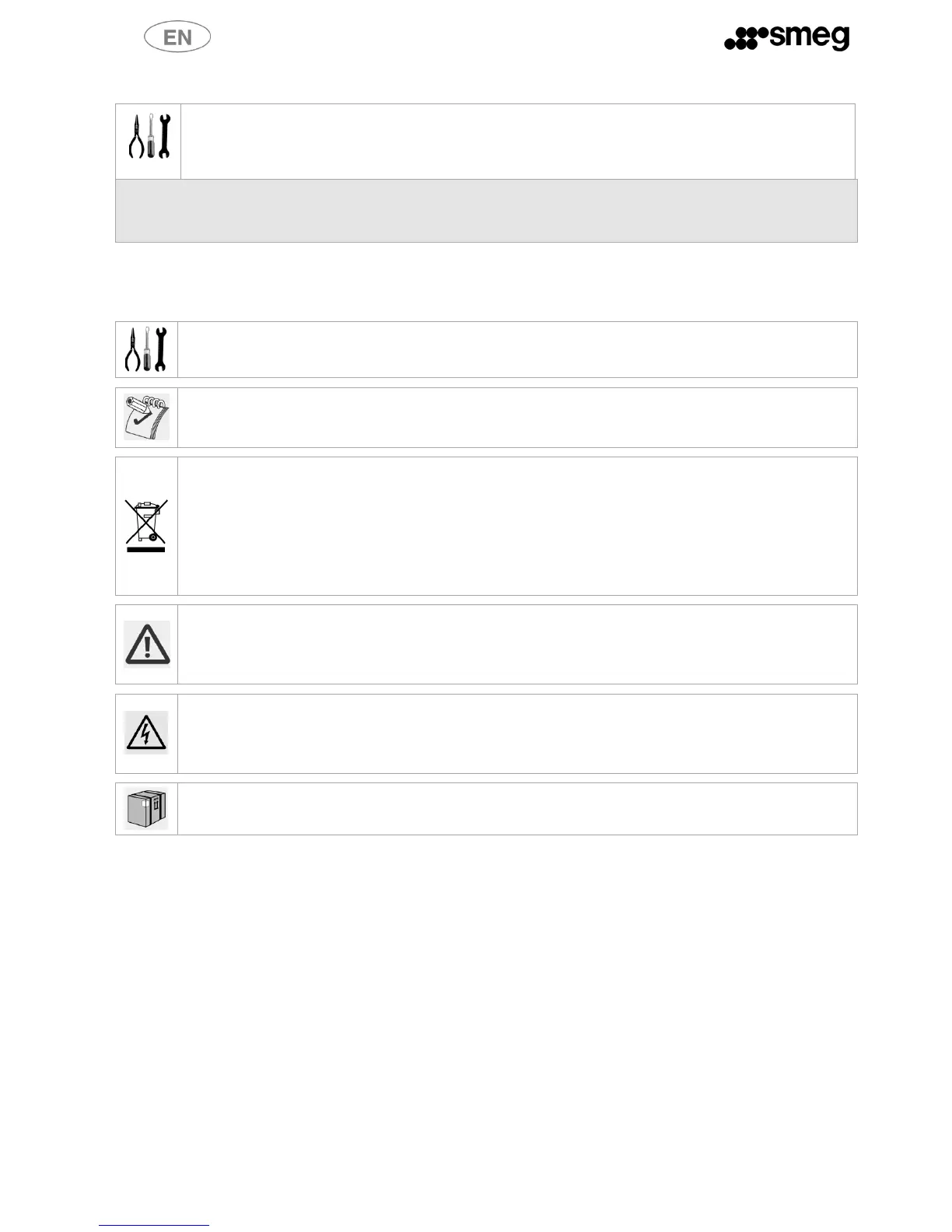 After removing the packaging (straps, cardboard, wooden base and PVC cover) check the condition of the