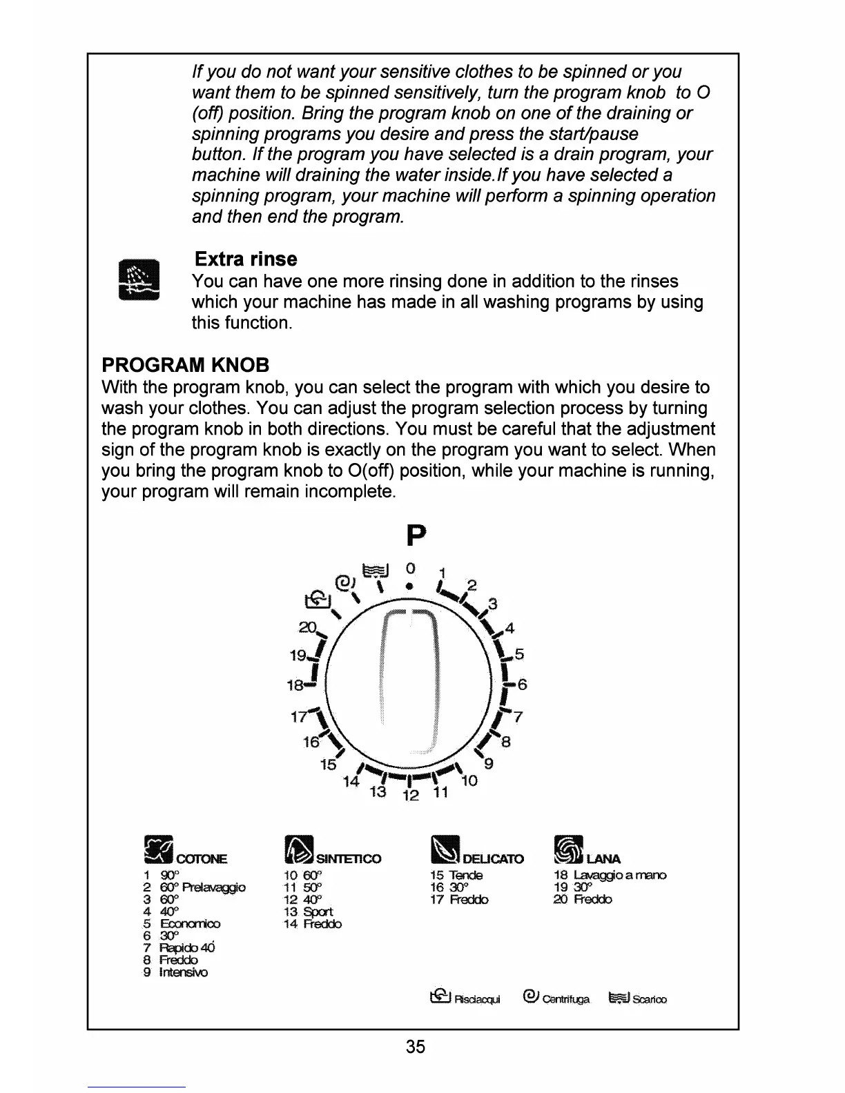 Smeg SWM60E - Program Knob and Extra Rinse Function