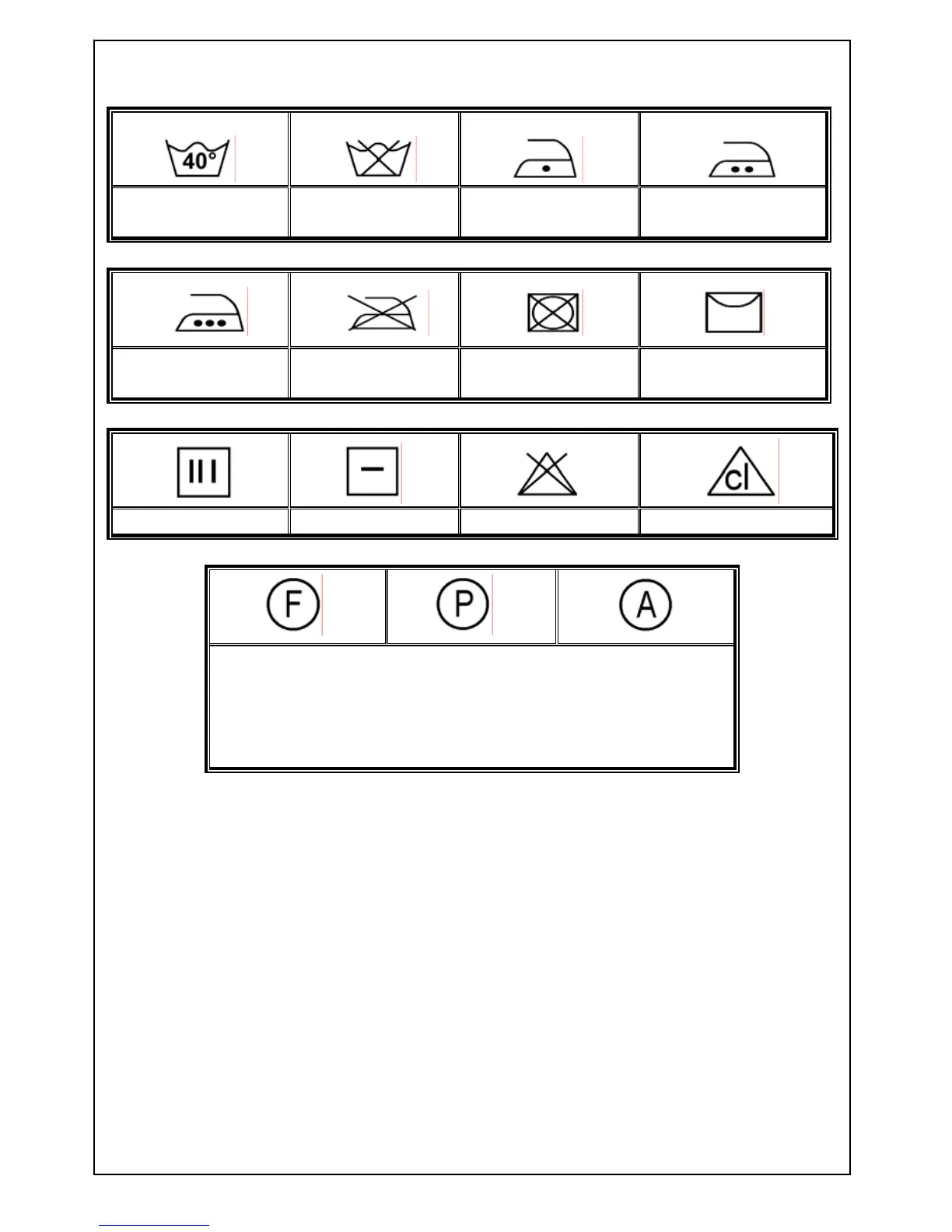 Garments bearing these symbols should not be