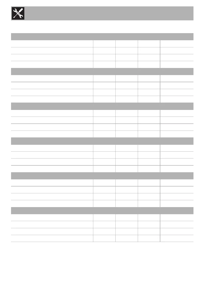 Burner and nozzle specifications tables