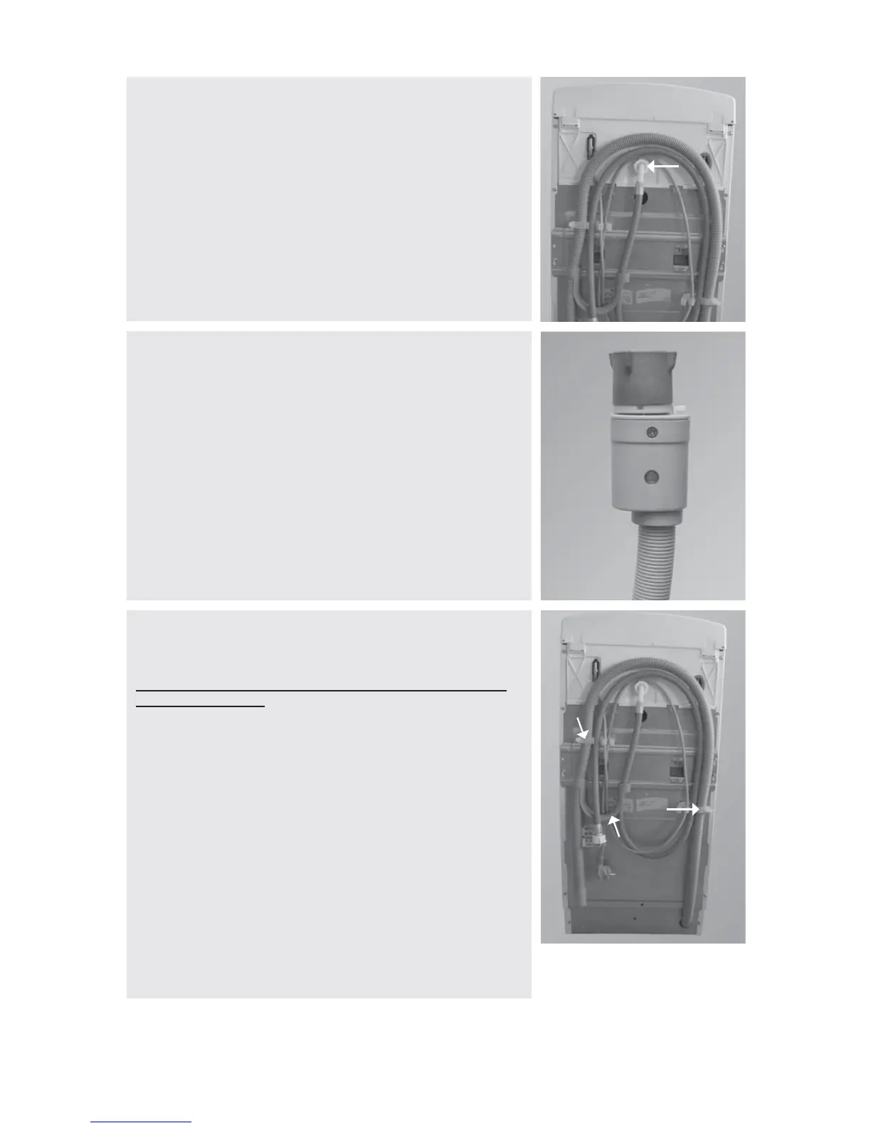 Do NOT loosen the drain hose from the right connection, see