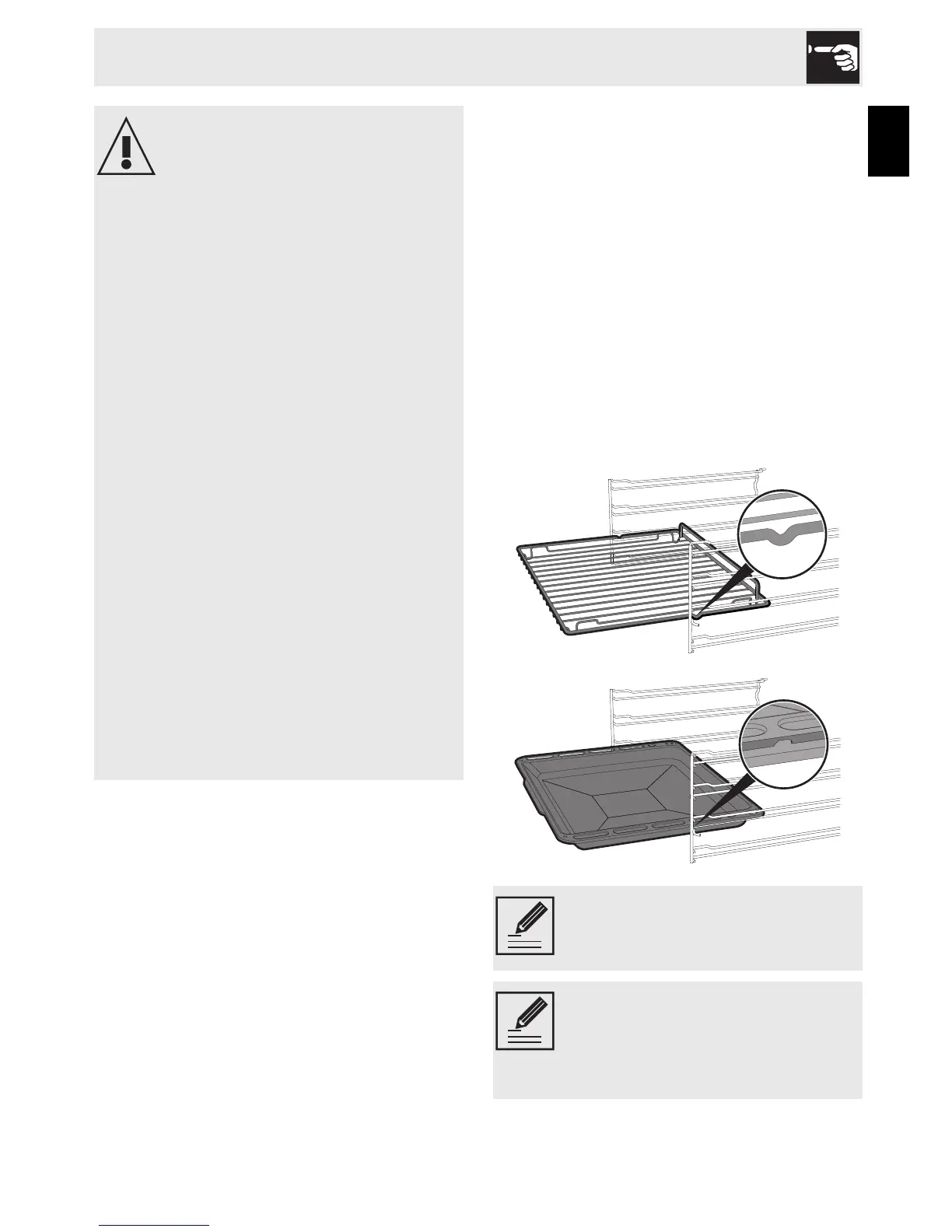 • Do not use the open door to rest pans or
