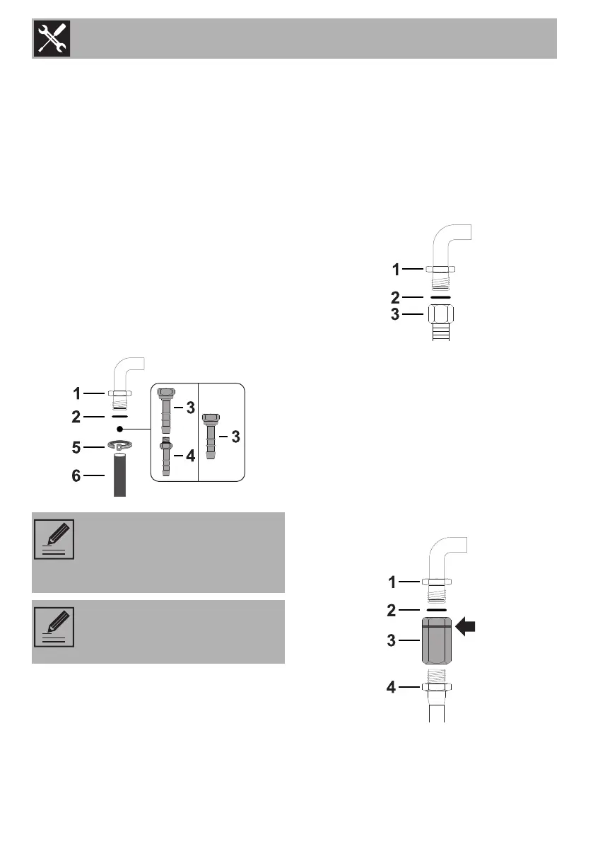 Carefully screw the hose connector 3 to the
