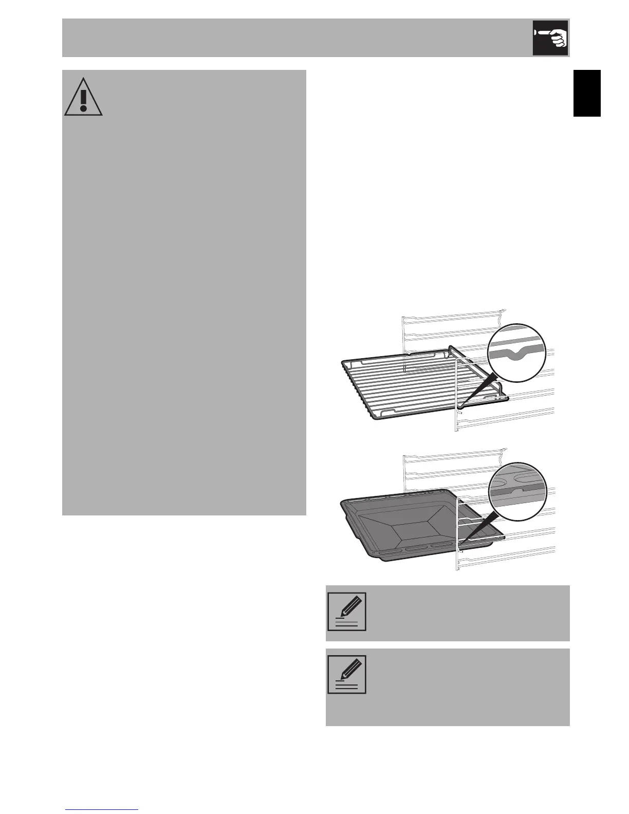 • Do not place pans or trays directly on