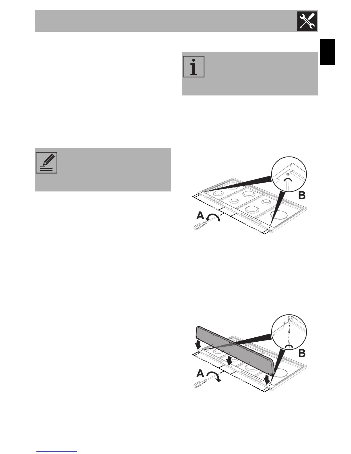 hob (A) and tighten the 2 screws under