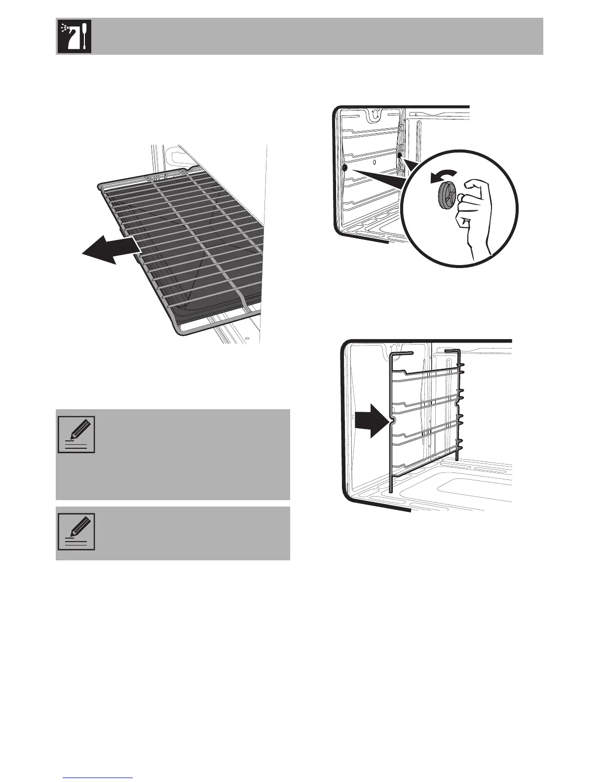 • Clean the oven racks with warm water