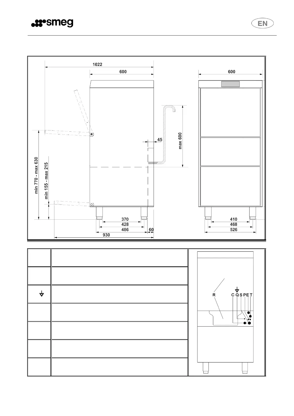 Smeg UD515D - Overall Dimensions (Raised Models)