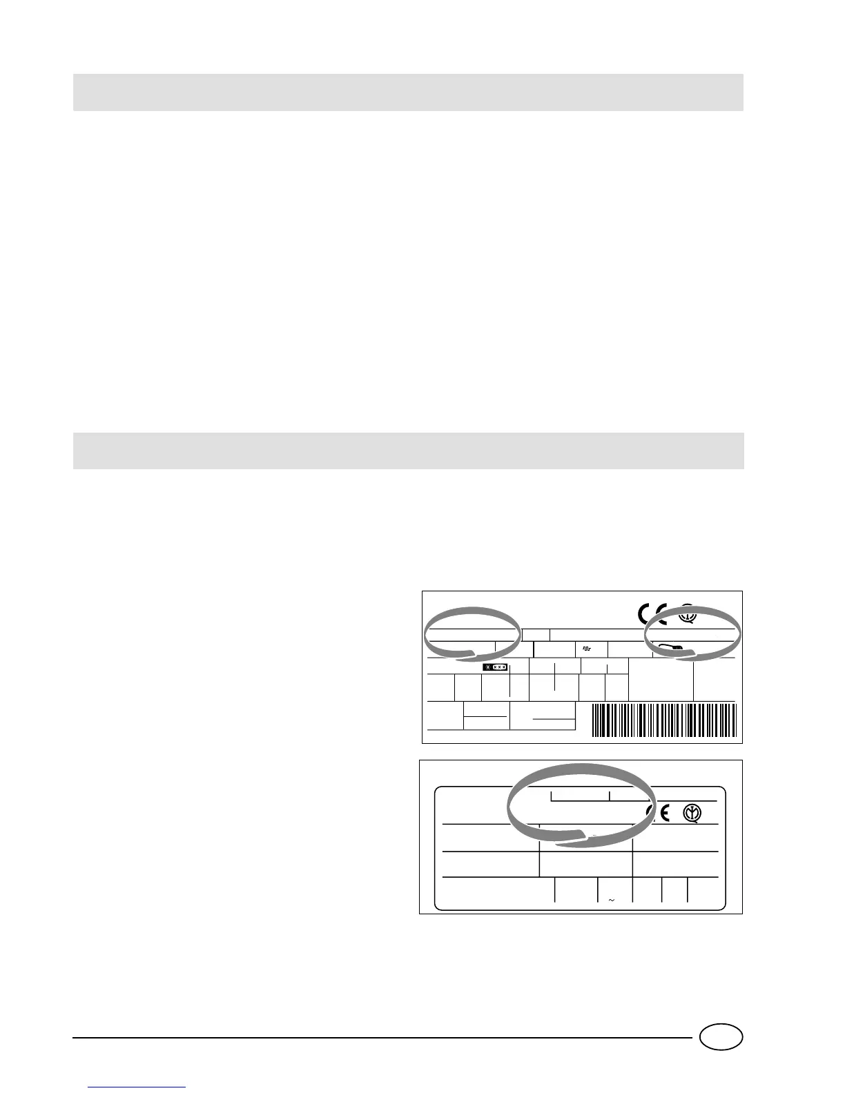model name (Mod.) and the relative numbers (S/N) written