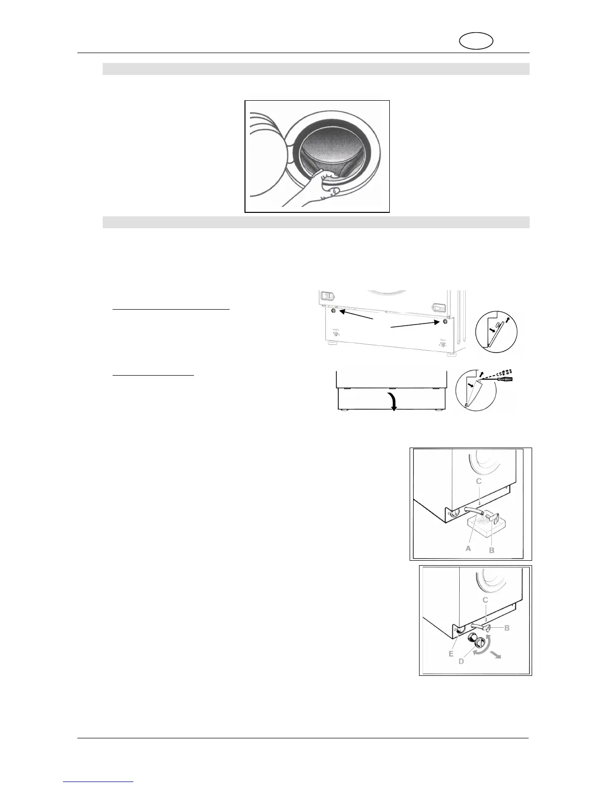 Built-in/completely concealed model – Fit the bottom of the plinth first. Push it towards the cabinet and put the