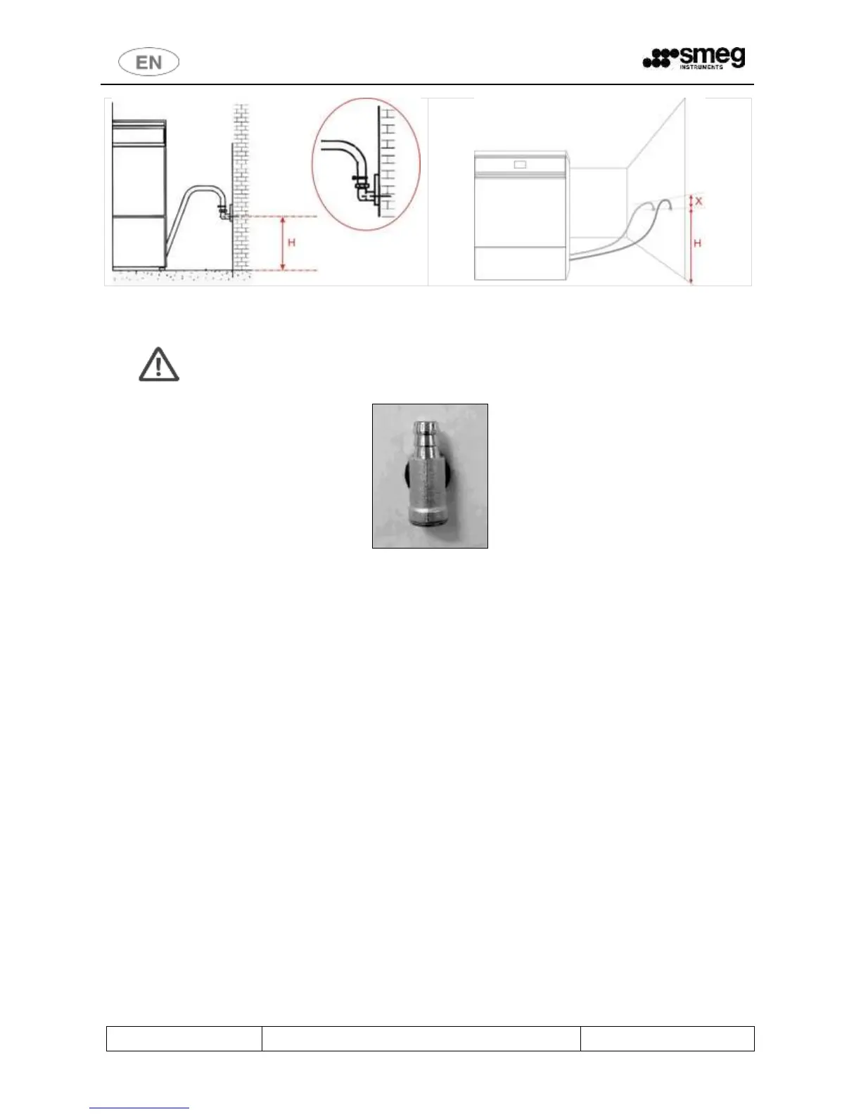 fig. 53 – Drain connection. 65 cm < H < 80cm, X < 20cm. N.ro 2 drain pipes are provided. Height difference “X”: only use original drain hoses and the