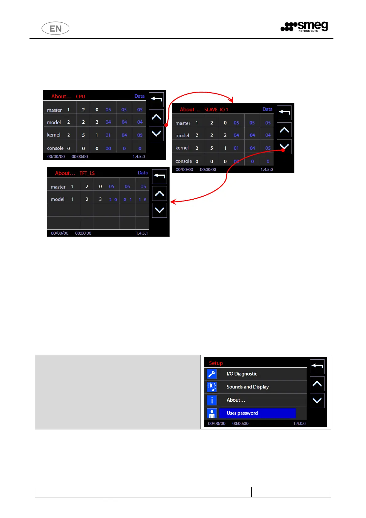 It shows the values and dates of issue of the FW installed on the electronic boards of the device.