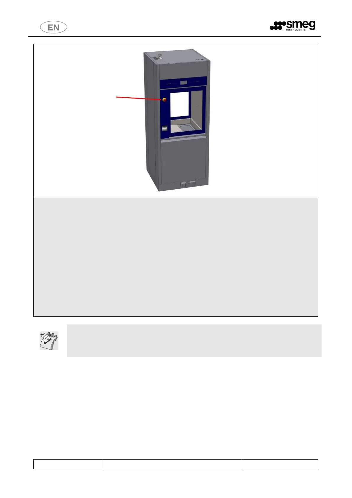 WARNING: once the “emergency button” has been pressed, it must be rearmed (by turning it)