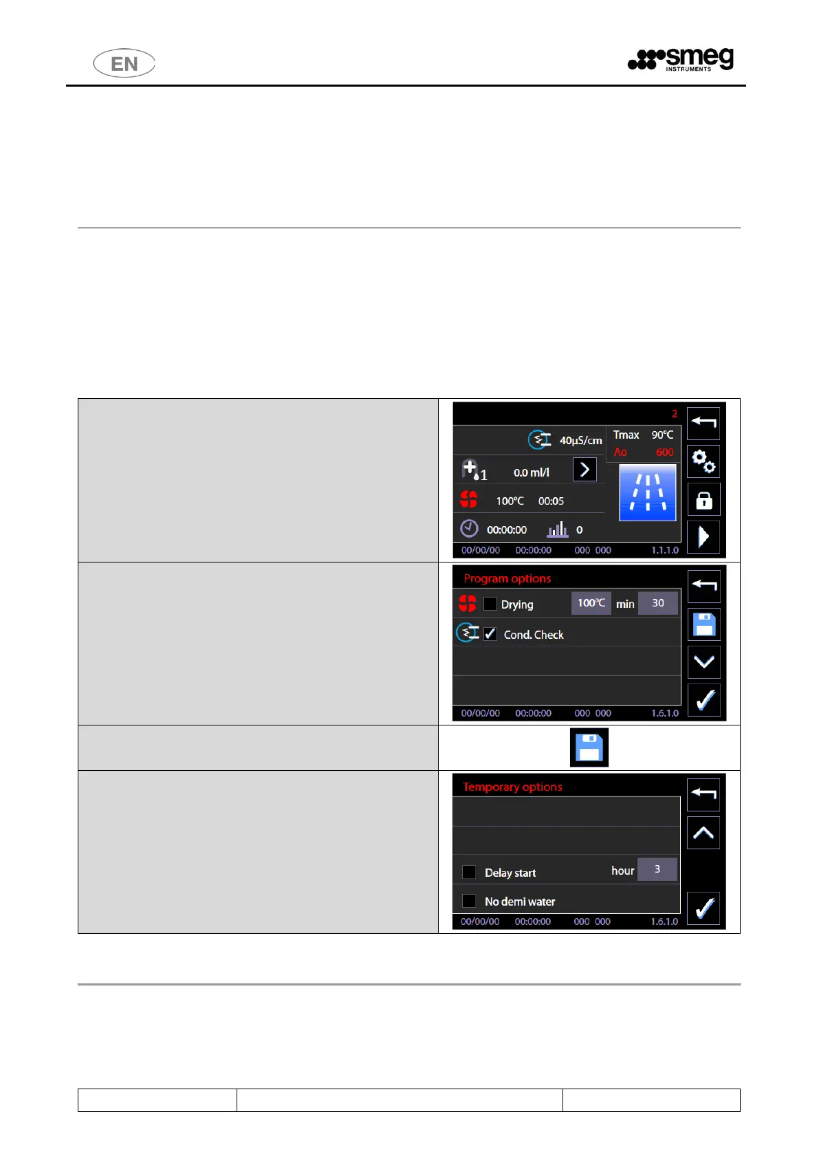 3. the existing Delay start and No demi water options are still available: these options apply to the