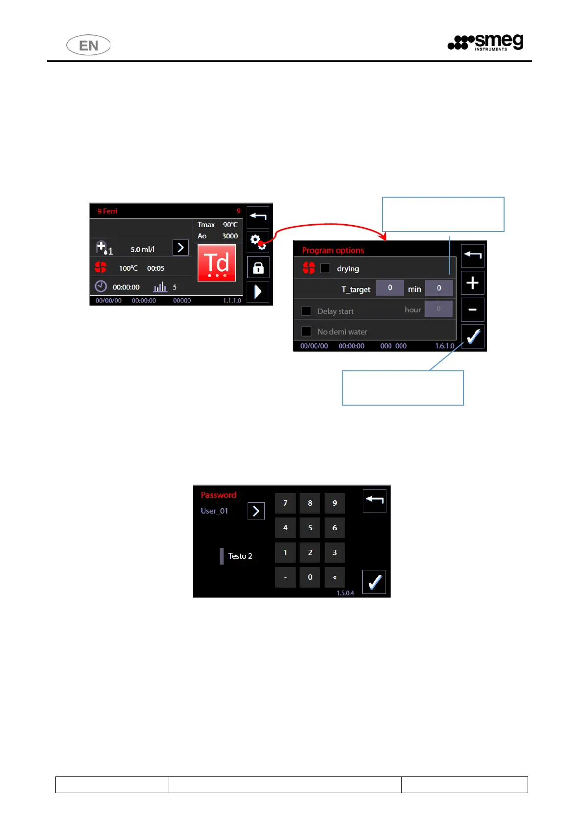 If the superuser has activated the “User check” function requiring the user to be identified, in order to start the cycle