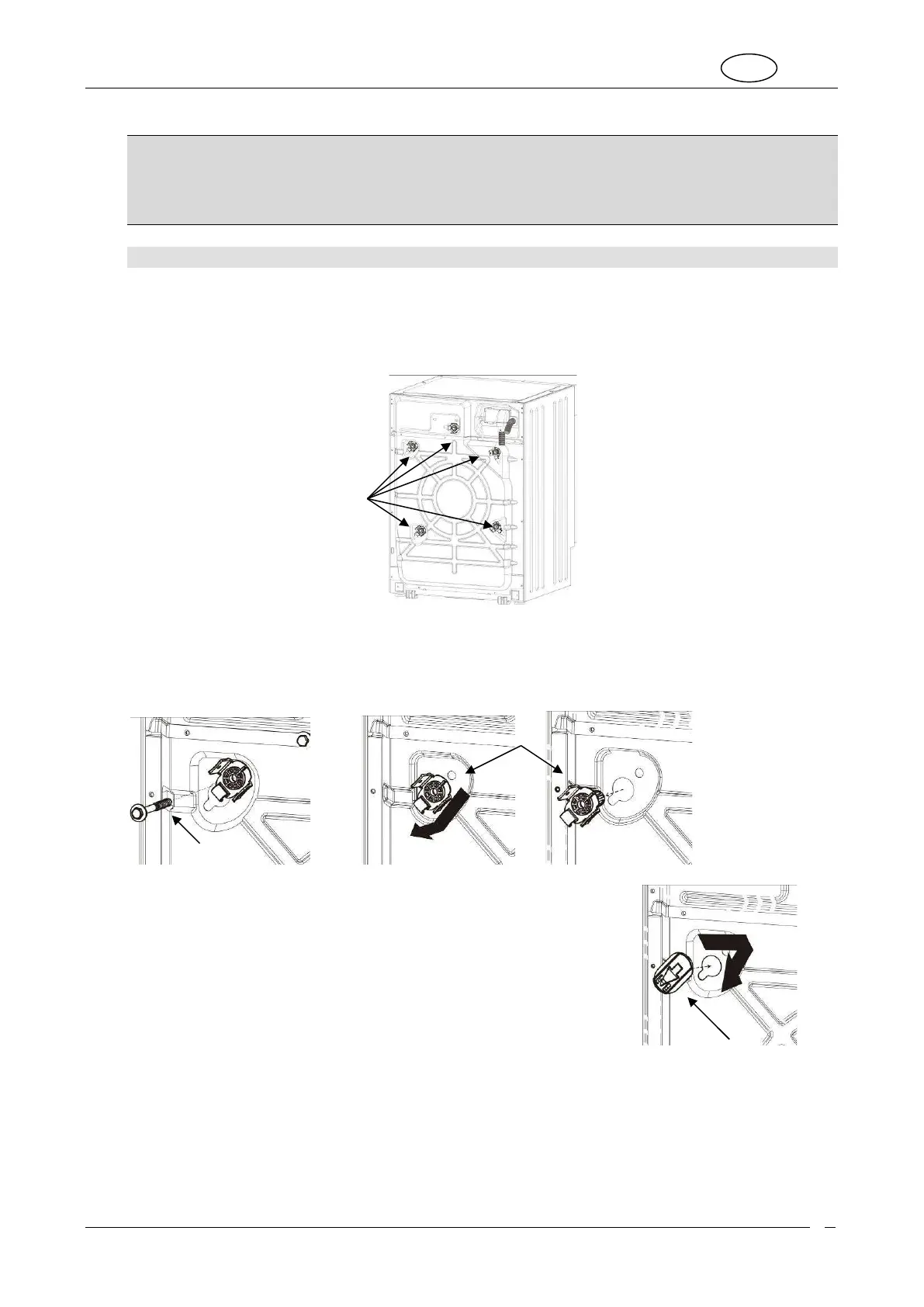 rear of the washer-dryer, with the relative plastic spacers (B). Once the screws have