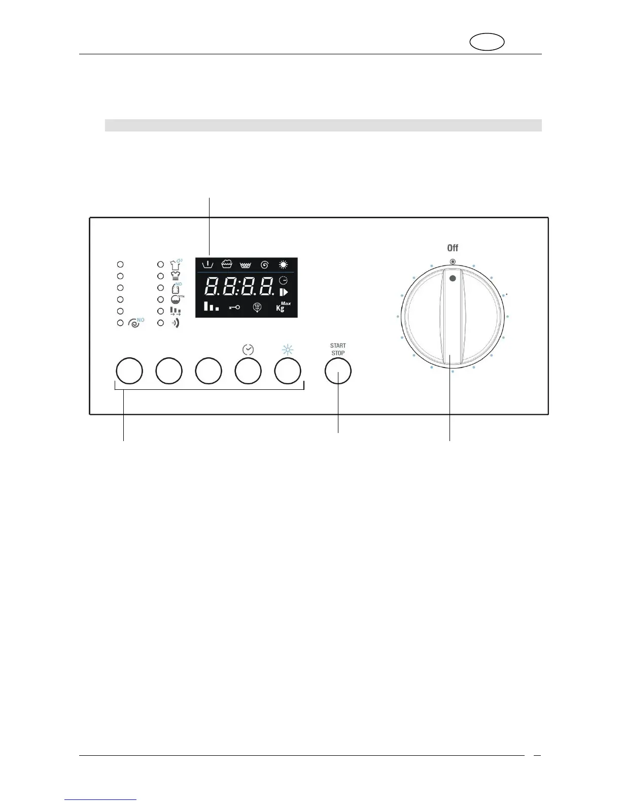drying levels, child lock, clean programme). The settings can be modified using the buttons under-