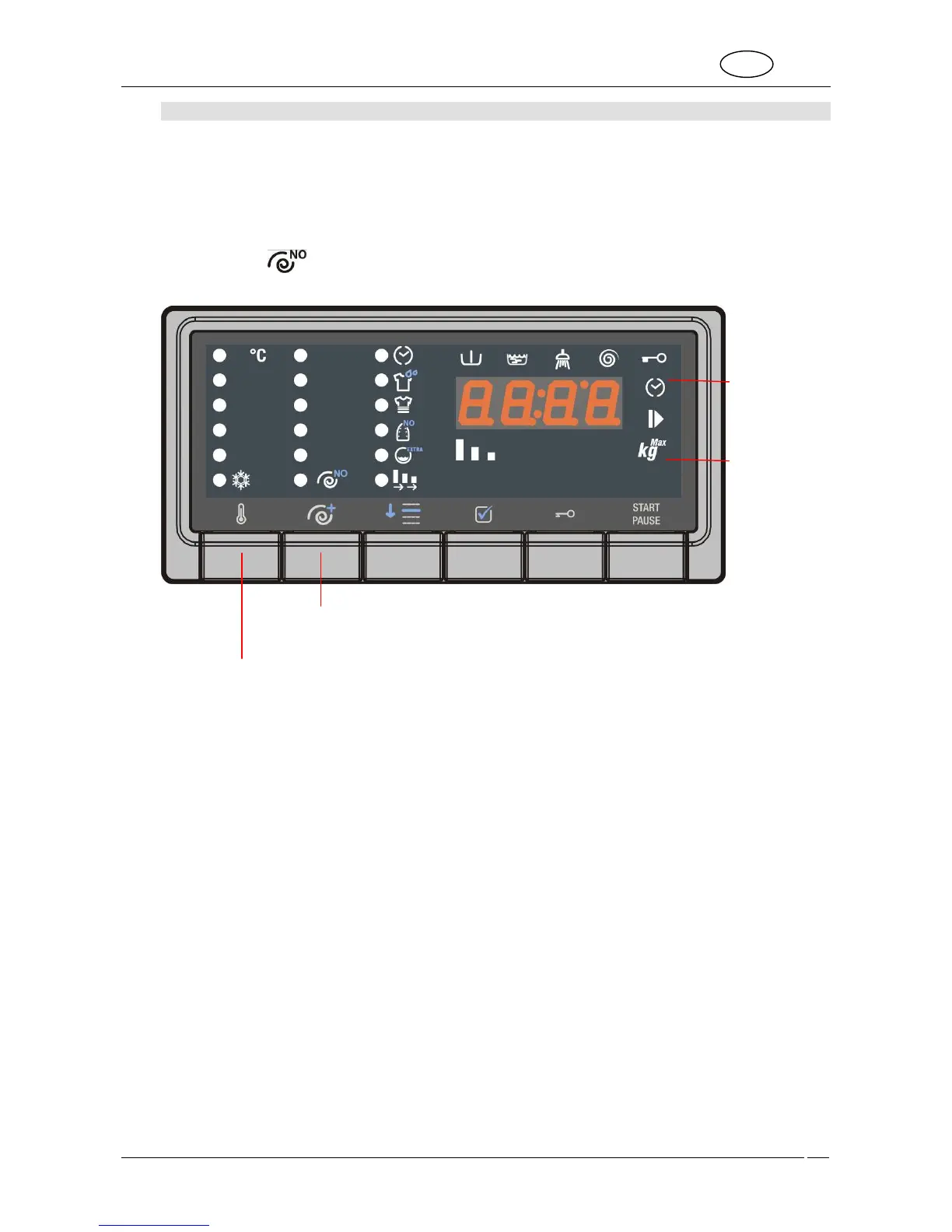 weight for the selected programme alternate on the display. The symbols on the display light up to identify the