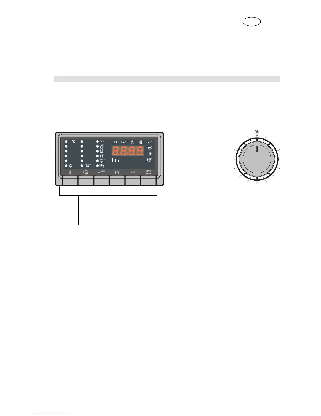 : shows the settings (washing temperature, spin speed, cycle status, flexi time, child lock