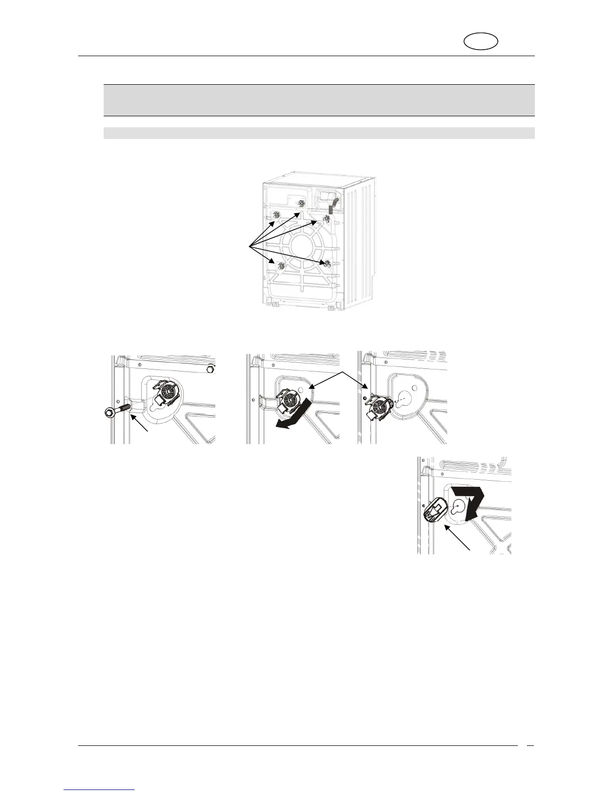 All the transport retainer fittings should be kept in a safe place; they must be fitted again if the appliance has to