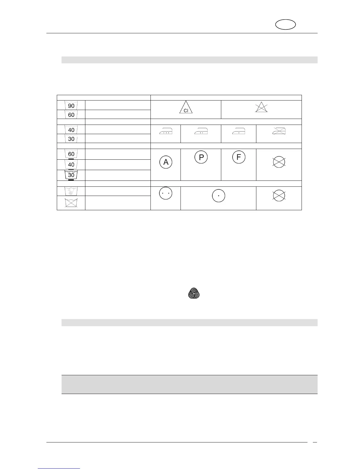 Normally, items carry labels with washing instructions. The following is a short description of the symbols u-